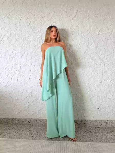 Feito com tecido crepinho, o macacão proporciona conforto e liberdade de movimento, sem perder a elegância.